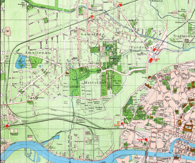 Name | Königsberg 1912, Stadtbezirk Nordwestliche Innenstadt, Stadtteile Lastadie, Laak, Amalienau, Neuroßgarten, Steindamm (Pharus) |