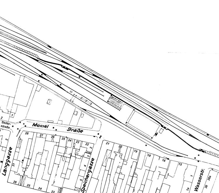 | Name | Tilsit 1939, Bereich Memelstr. zwischen Langgasse und Wasserstr., Speichergasse, Memelkai, Hafenspeicher (Kat.Pl.) |
