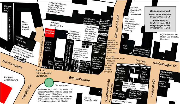 Name | Johannisburg 1944-1945, Bereich Schanzenstr.- nördl. Teil, Bahnhofstr., Königsberger Str. |