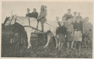 [139034] Dwielen, Kartoffelernte mit kräftiger Unterstützung durch jugendliche Helfer 1930 - 1940