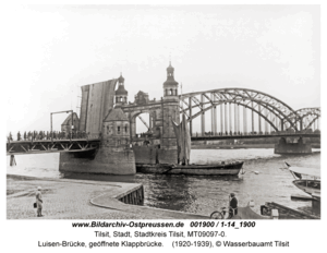 [1900] Tilsit, Luisen-Brücke, geöffnete Klappbrücke 1920 - 1939