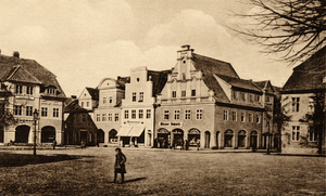 [142857] Neidenburg, Großer Marktplatz mit Hotel Neureiter links 1914 - 1915
