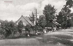 [125089] Nemmersdorf, Ortsansicht mit Brücke über die Angerapp 1915