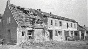 [143755] Nemmersdorf, Durch Kriegshandlungen zerstörte Gaststätte "Roter Krug" 1944