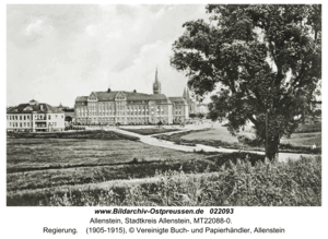 [58739] Allenstein, Platz der ehem. Mühle Sperl, Hintergrund Garnisonkirche 1955 - 1965