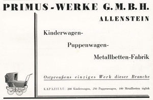 [77520] Allenstein, Primus-Werke, Kinderwagen-Fabrik 1920 - 1933