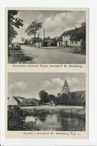 [47411] Arnsdorf, Kirche und Kriegerdenkmal, Kaufgeschäft, Schule 1925 - 1928