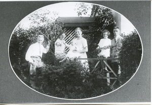 [109426] Gallingen Kr. Bartenstein, Rudi Grosan mit 4 Kindern von Pfarrer Grigull im Pfarrgarten 1911