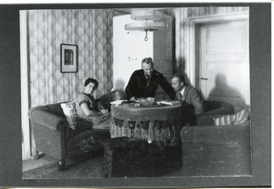 [101129] Gallingen Kr. Bartenstein, Rudi und Gertrud Grosan mit Besucher (N. N.) in der Kantorwohnung 1928