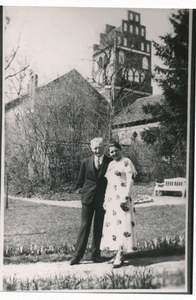 [109638] Gallingen Kr. Bartenstein, Rudi und Gertrud Grosan im Kantorgarten, Blick SO auf die Kirche 1934
