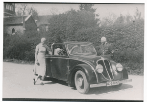 [109803] Gallingen Kr. Bartenstein, Rudi Grosan in der Uniform eines NSKK-Obertruppführers mit seinem DKW-Cabrio 1936
