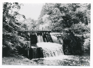 [110065] Gallingen Kr. Bartenstein, Schleuse des Mühlenteiches vom Ufer des "Schleusendümpels" aus gesehen 1936