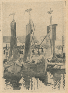 [137573] Heydekrug Kr. Heydekrug, Markt, Kurenkähne, Aquarell 1920 - 1930 [To ask for the picture use the contactinfos for the picture]