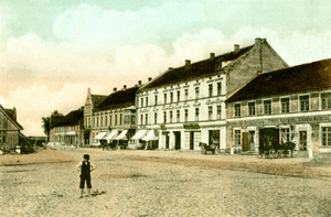 [145194] Heydekrug Kr. Heydekrug, Marktplatz mit Geschäftshäusern auf der Ostseite 1920 [To ask for the picture use the contactinfos for the picture]