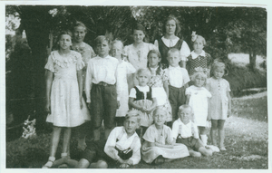 Mulden, Sonntagsschule mit Leiterin Hanne Grimalowski