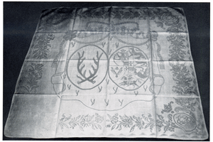 [107248] Schlobitten, Ort , Schloss, Serviette, Doppelwappen Dohna-Holstein, Sachsen-Schlesien 1738