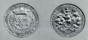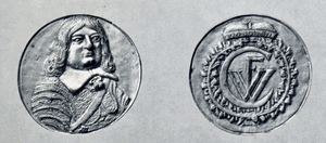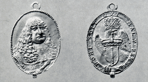 [107377] Schlobitten, Ort , Schloss, Silbermedaille mit Dohnaschem Wappen, Rückseite Doppelwappen Dohna-Solms, Holland (?) 1654