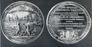 [107385] Schlobitten, Ort , Schloss, Silberne Medaille auf das 300-jährige Jubiläum der Union Preußen-Polen, Danzig 1754
