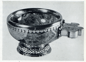 [107282] Schlobitten, Ort , Schloss, Trinkbecher aus Amethyst, Silbervergoldete Montierung, Wappen Oxenstierna und Banér 1610