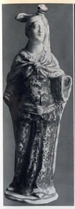 [107299] Schlobitten, Ort , Schloss, Weibliche Fayencefigur II, Vorderansicht, Ansbach 1725 - 1730