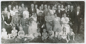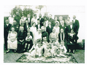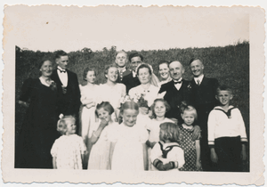 [140888] Schwägerau, Karl Schulz und Ehefrau mit Tochter Dora, links Hermann Klimmeck 1936