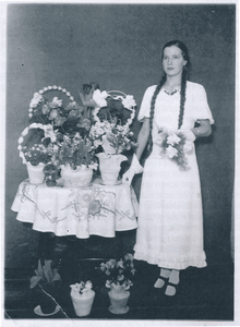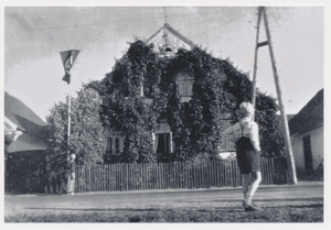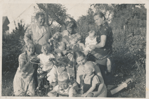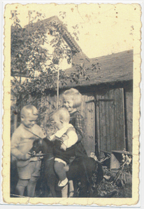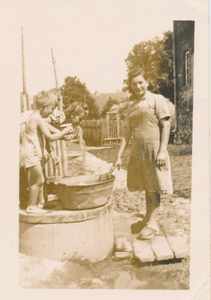 [140707] Schwägerau, Im Garten von Franz Schulz mit Kindern am Brunnen 1937 - 1939