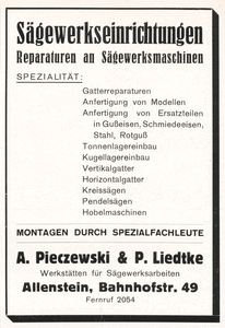 Allenstein, Sägewerkseinrichtungen, A. Pieczewski & P. Liedtke