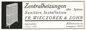 Allenstein, Sanitärbetrieb, Fr. Wieczorek & Sohn