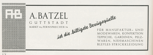 [74834] Guttstadt, Manufaktur -u. Modewaren, A. Batzel 1920 - 1934